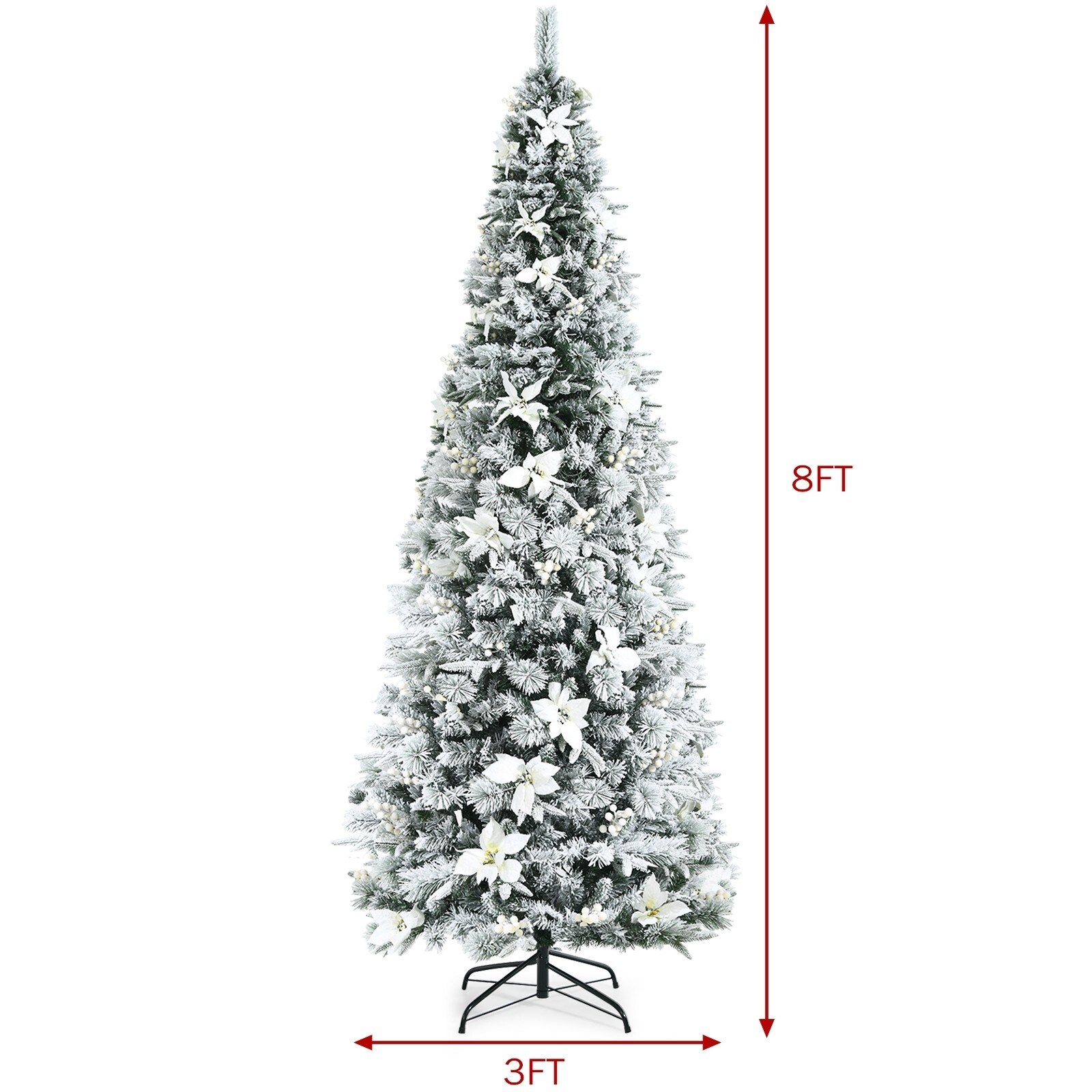 8 Feet Snow Flocked Christmas Pencil Tree With Berries And Poinsettia Flowers 8 Feet Overstock 34321113